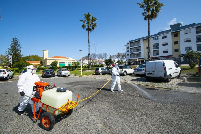 No caso das ruas está a ser aplicado um detergente/desinfetante com base em cloro ativo. As lavagens dos arruamentos vão prolongar-se durante toda a semana.
