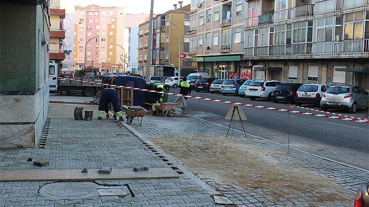 Os trabalhos de repavimentação estão a decorrer na área pedonal, junto às instalações do LATI, entre os números 1 e 3 da rua da Camarinha e junto à farmácia, entre os números 20 e 24 da mesma rua.