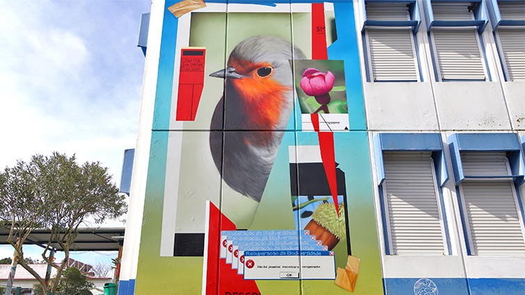 Criada pelo artista de arte urbana Smile, nome artístico de Ivo Santos, a obra apresenta como elemento central a espécie pisco-de-peito-ruivo, uma das mais emblemáticas do concelho de Setúbal.