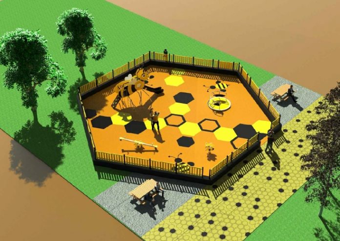 A estrutura, com formato hexagonal, inspirado nos favos de mel, incluirá ainda a aplicação de pavimento amortecedor, vedação, instalação de papeleiras e uma mesa de piquenique com dois bancos acoplados, num investimento global superior a 70 mil euros.