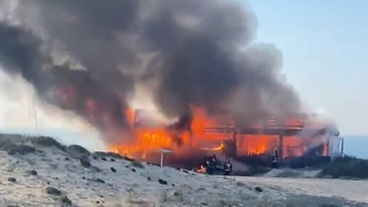 Um bar na praia do Meco, em Sesimbra, foi destruído por completo pelas chamas de um incêndio, ontem.